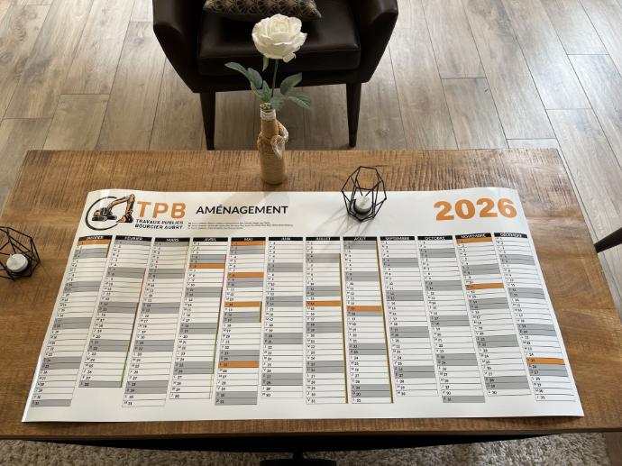 Calendrier mural Velleda pour l'entreprise TPB en Vendée